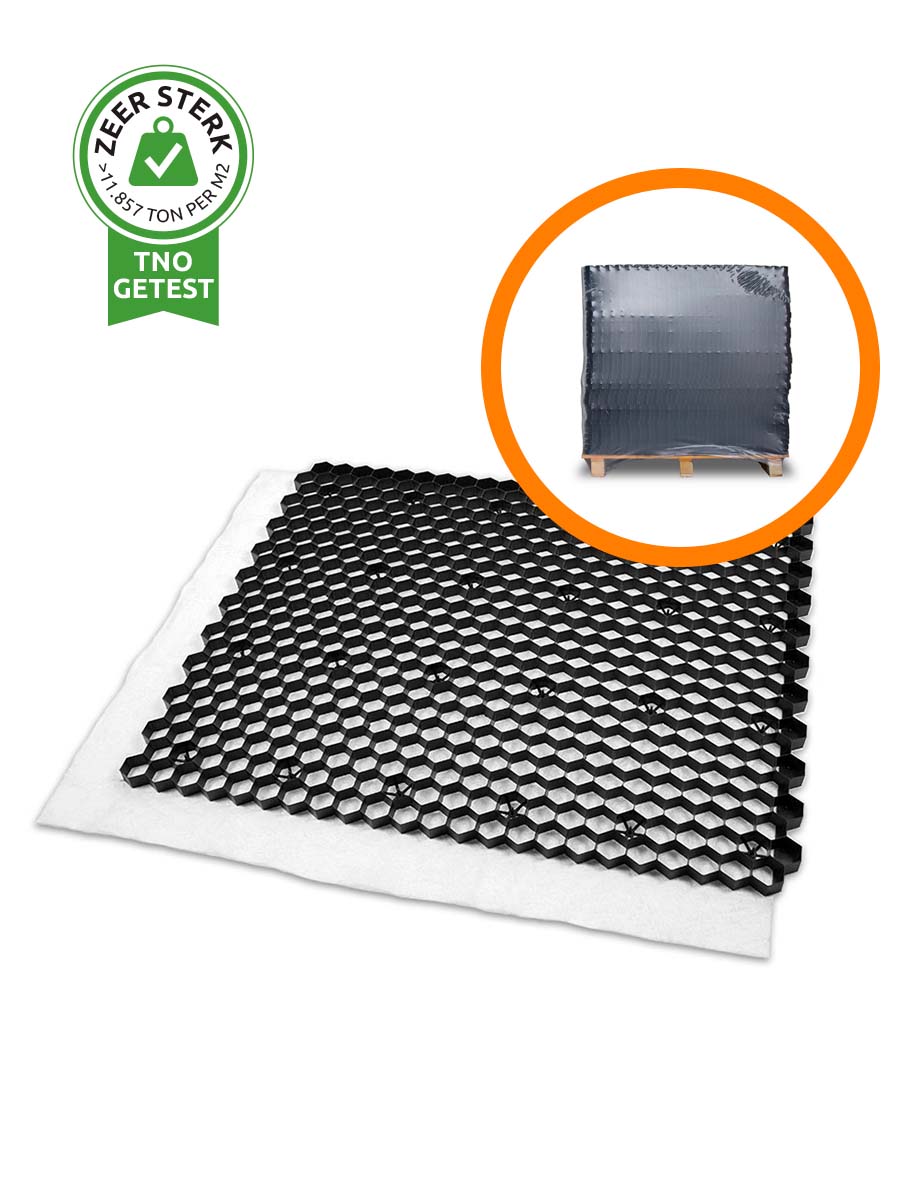 Profiteer van deze volle palletactie van de EuroGravel PLUS grindplaten / grindmatten, met geïntegreerd anti-worteldoek.