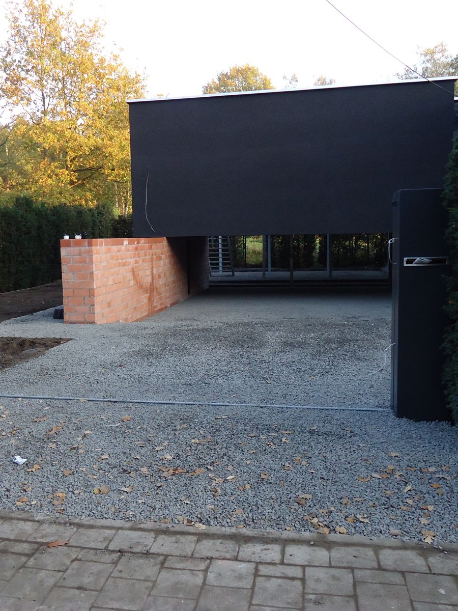 Grote, zeer drukvaste zwarte splitplaten / grindroosters van het merk Easygravel, met handig kliksysteem, zonder anti-worteldoek. Voorkomt de vorming van kuilen en spoorvorming in grind of siersplit.